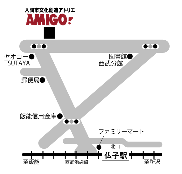 西武池袋線 仏子駅 北口より徒歩約5分です。行きは下り坂のため行きやすいと思います。歩道がやや狭いためご注意ください。